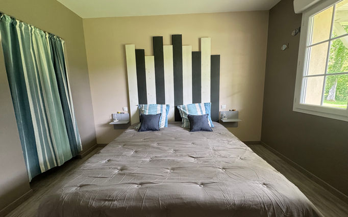 La chambre océane, un espace élégant et apaisant doté d'un lit confortable de 180 cm x 200 cm, elle vous promet des nuits reposantes. Profitez également d'un dressing spacieux et d'une salle de bain moderne avec douche, pour un séjour des plus agréables.